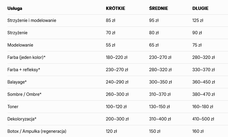 *ostateczna cena usługi zależy od indywidualnych potrzeb i oczekiwań klienta oraz zużycia materiału.